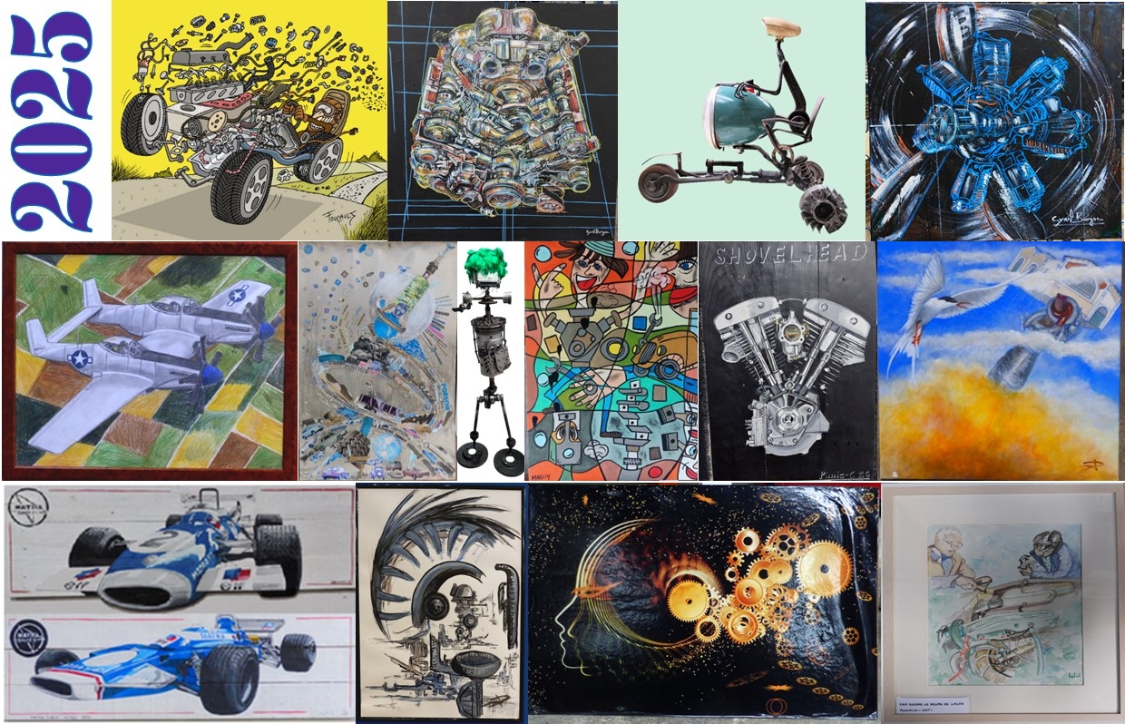 Le Moteur est rêve, le rêve est moteur Joseph BARBIN, C BENOIT, Manuel DA ROSA, Jacquis FOURNIER, Jacky GOUSSIN, Claude HERCENT, Véronique PLAULT, LILIT, Textil'Art, Didier JEUDY, Sylvie BROUAT, FAÏK, Michel FORICHON, Guy CHARRIER, GéPéBé, Jean-Pierre DENIS, Christophe HUET. |